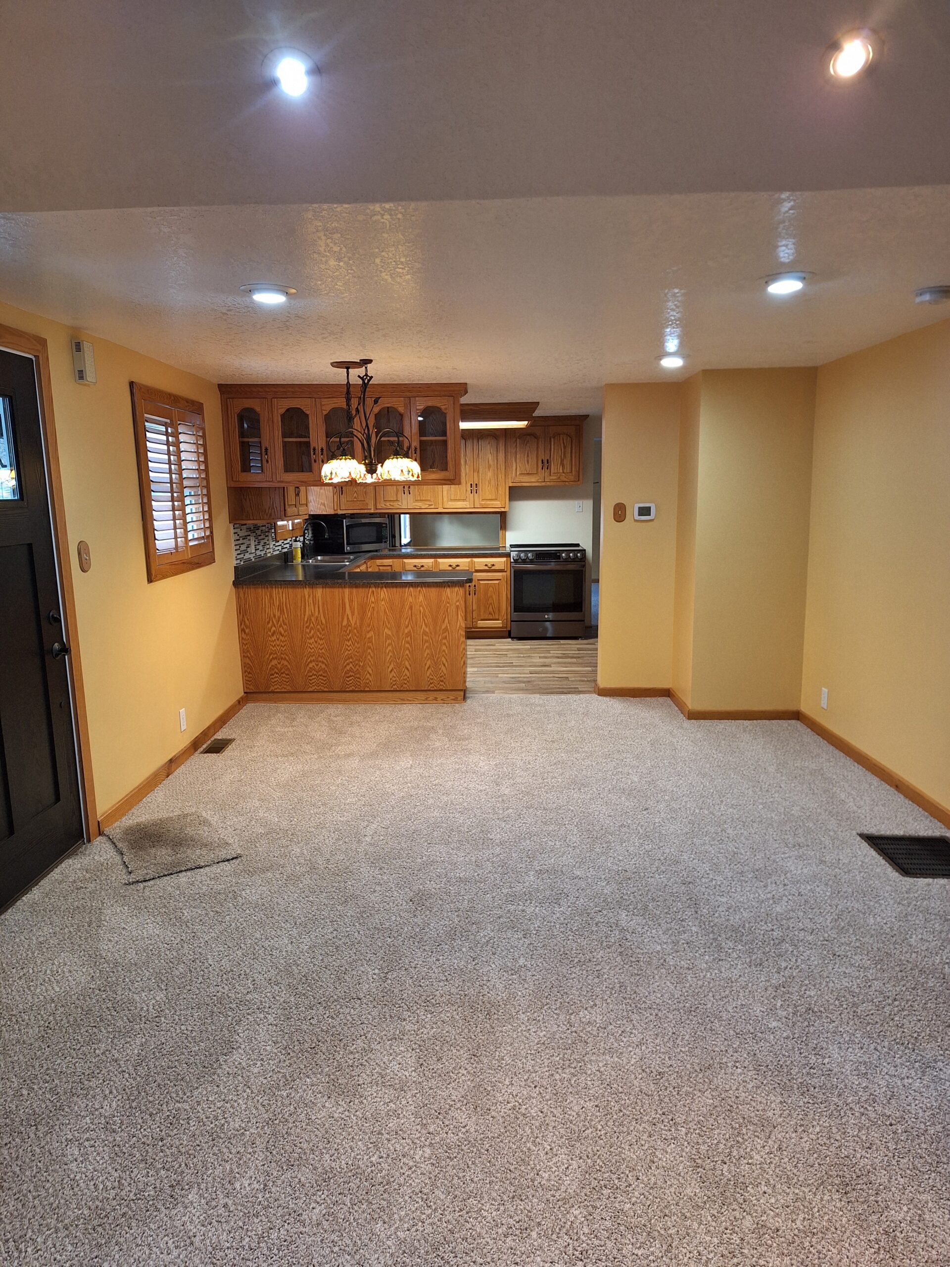family. The oak kitchen cabinets have plenty of space and storage for all of your cooking needs. Along with the 2 upstairs bedrooms there is a landing area that would be great for a play